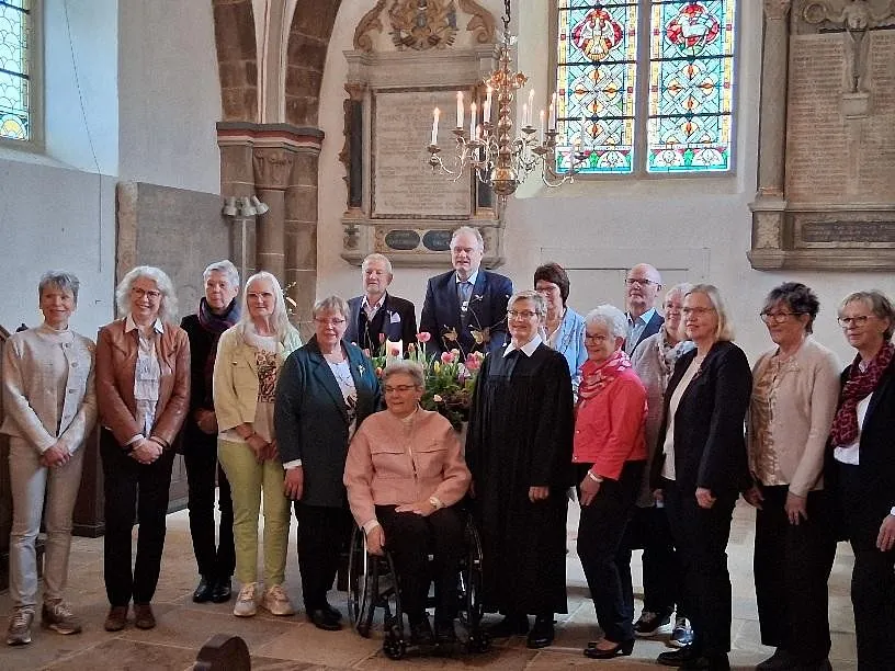 15 Goldkonfirmanden feierten am 29.03.2026 ihre Goldkonfirmation. Pfarrerin Wortmann-Rotthoff vertrat die erkrankte Pastorin Jutta Kiquio bei der Gottesdienstfeier. Nach dem Sektempfang im Gemeindehaus ging es zum gemeinsamen Mittagessen ins Gasthaus Thies in Gaste.