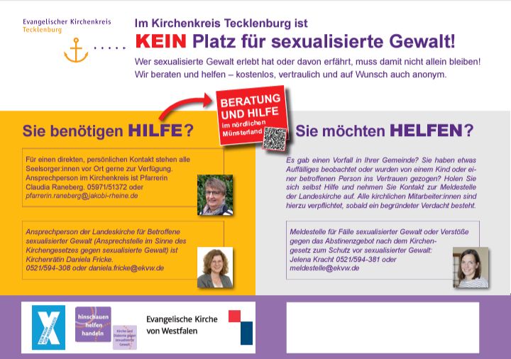 Zum Schutz vor sexualisierer Gewalt wird von jeder Kirchengemeinde im Kirchenkreis ein eigenes Schutzkonzept erstellt. Auch die Kirchengemeinde Wersen hat ein eigenes Schutzkonzept erstellt. Zum Schutzkonzept gehört u. a. eine Verhaltensampel, die allen Gruppenleitern und Gruppenmitgliedern zur Kenntnis gebracht wird. Die Verhaltensampel kann unter dem angefügtem Link geöffnet werden.